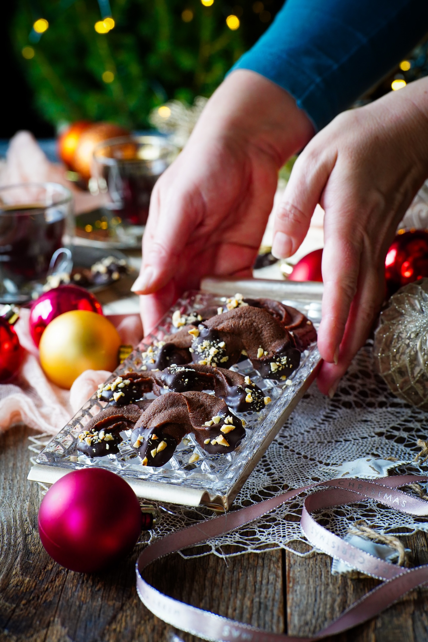 Pečte pri teplote 180 stupňov 10 až 12 minút. Po vychladnutí namáčajte končeky rohlíčkov do rozpustenej čokolády a posypte nasekanými orieškami. Čokoládové vianočné pečivo skladujte vo vzduchotesnej nádobe na chladnom mieste pokojne 3 až 4 týždne.