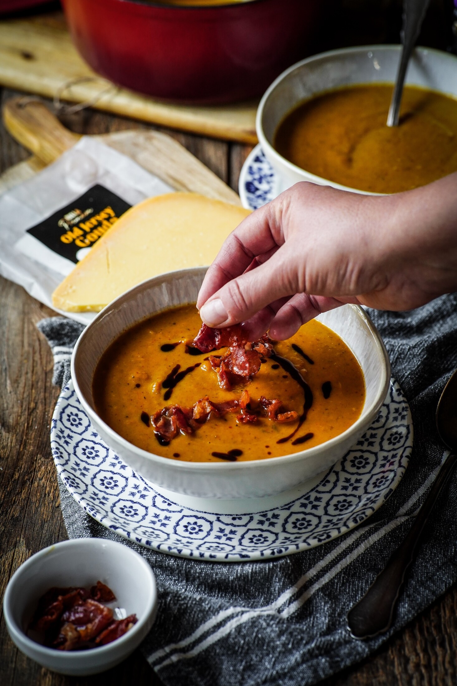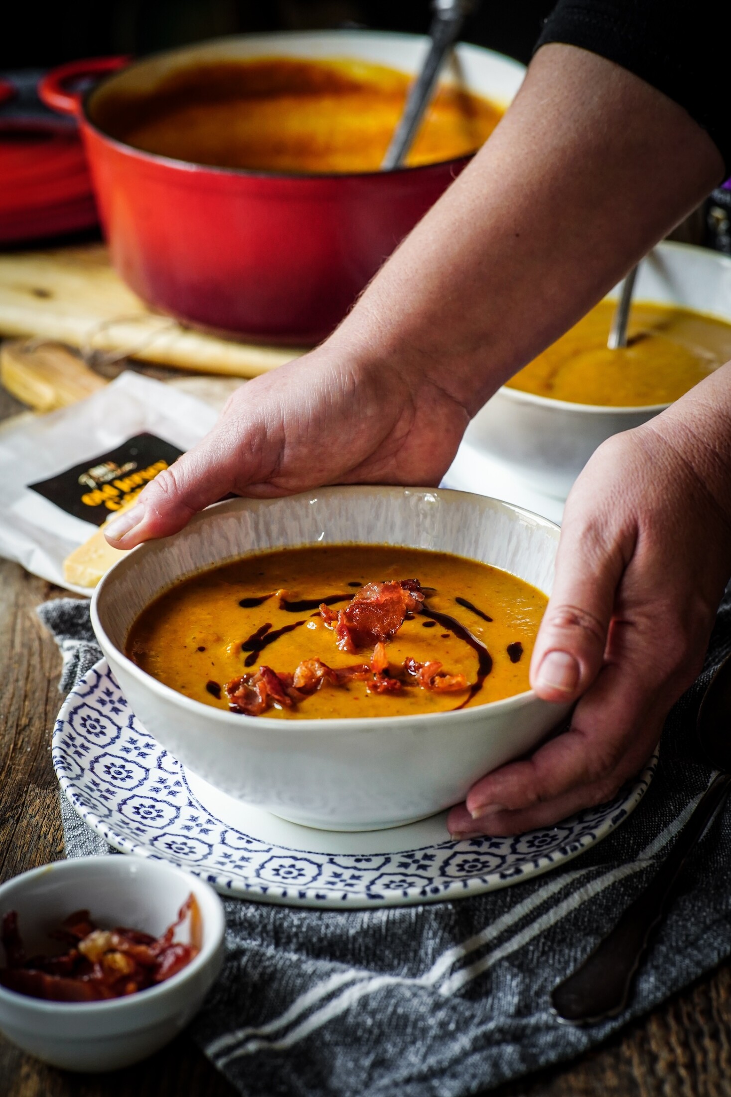 Nie je za ním žiadna veda – len pár kúskov zeleniny, trochu olivového oleja, korenie a rúra, ktorá urobí väčšinu práce za vás. Počas pečenia sa z kuchyne začne šíriť vôňa sladkej cibule, papriky a koreňovej zeleniny, ktorú len ťažko prehliadnuť. A keď všetko spolu ešte povaríte v zeleninovom vývare a rozmixujete dohladka, vznikne jemný, hustý krém, ktorý chutí ako jeseň v miske.