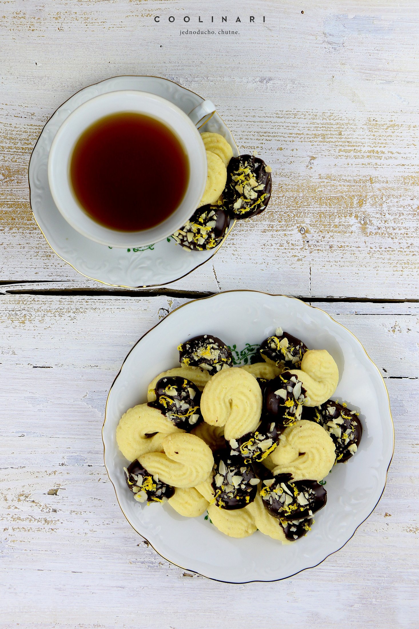 - Medzitým si vo vodnom kúpeli roztopte čokoládu. Esíčka v nej do polovice namáčajte, ukladajte na papier a posypte nadrobno nasekanými mandľami a citrónovou kôrou. Toto vianočné pečivo vám opäť dobre uskladnené vydrží pár týždňov.