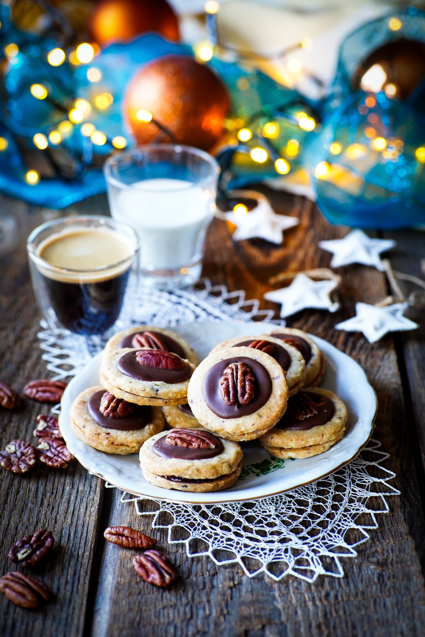 Orechové kolieska plnené slivkovým lekvárom určite patria medzi obľúbené orechové vianočné pečivo. Dve kolieska z orechového cesta spojené slivkovým lekvárom sú dozdobené čokoládou a kúskom orieška. Tradične sa pri príprave tohoto orechového pečiva používajú mleté vlašské orechy.